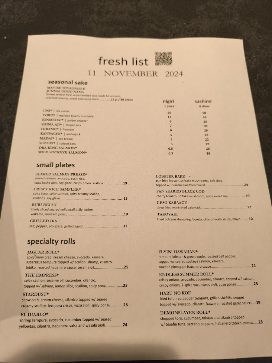 thinly sliced salmon drowned in yuzu citrus ponzu w/ jalapeños, sprouts & tobiko